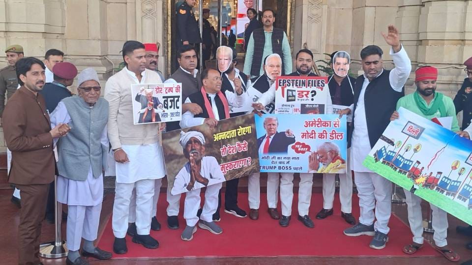 बजट पेश होने से पहले सपा विधायकों ने सरकार के खिलाफ अनोखा प्रदर्शन किया। वह प्रधानमंत्री नरेंद्र मोदी, अमेरिकी राष्ट्रपति डोनाल्ड ट्रंप समेत अन्य लोगों के मुखौटे पहनकर विधानसभा परिसर पहुंचे।