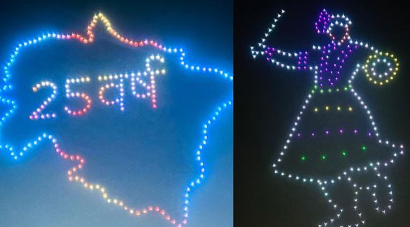 त्तराखंड नागरिक उड्डयन विकास प्राधिकरण (यूकाडा) ने राज्य स्थापना के 25 वर्ष पूरे होने पर रजत जयंती उत्सव मनाया। इस दौरान ड्रोन लाइट शो में आकाश में 300 ड्रोन से उत्तराखंड की समृद्ध सांस्कृतिक धरोहर, आध्यात्मिक पहचान व प्राकृतिक सौंदर्य की छटा बिखेरी।